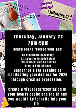 Manifest through creative expression by displaying images and words that represent whatever you want to invite into your life moving forward. Using a playful process of collage with like minded individuals in a light and fun setting, but it's also powerful-because what we create with intention will set the stage for real growth, as it will become a visual roadmap to all you want this year to be. No Experience required!